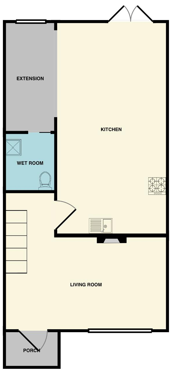 The rear garden is approximately 80 ft and has a paved patio area to front along with with astro turf either side of a paved path which leads to a raised area that has shed for storage and a large outroom which has power and double glazed double doors and windows.