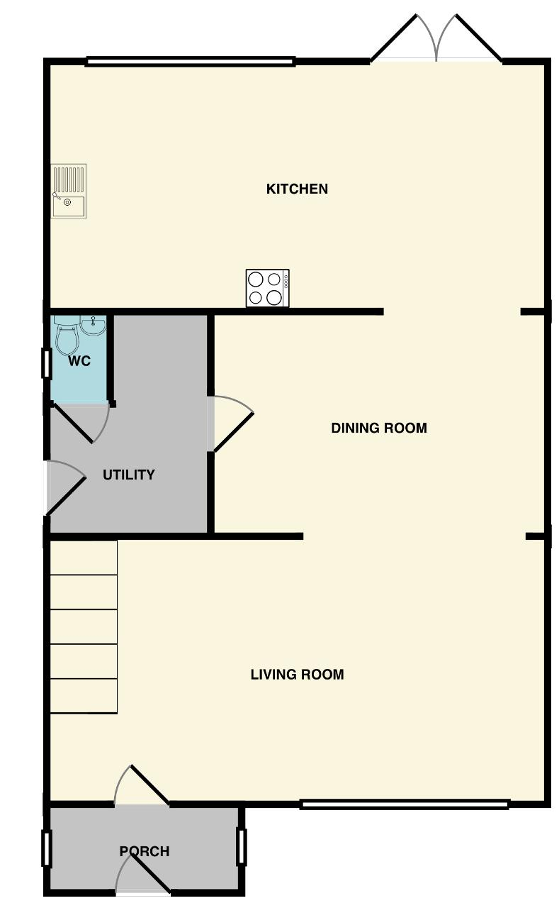 Large windows and rear access help to draw in natural light, giving the ground floor a warm and airy feel throughout.