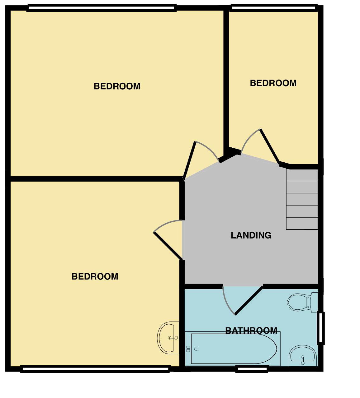 Heading up the carpeted staircase onto the first-floor landing there is a loft with loft hatch along with four wooden doors, three of which open into all three bedrooms leaving the last door to open into the first-floor bathroom.