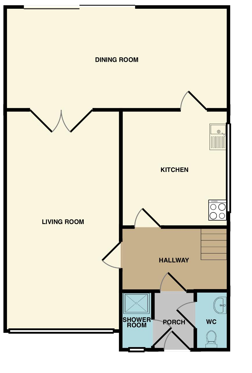 The porch is a great sized space and features two wooden doors to either side which lead into the ground floor WC and shower room.
