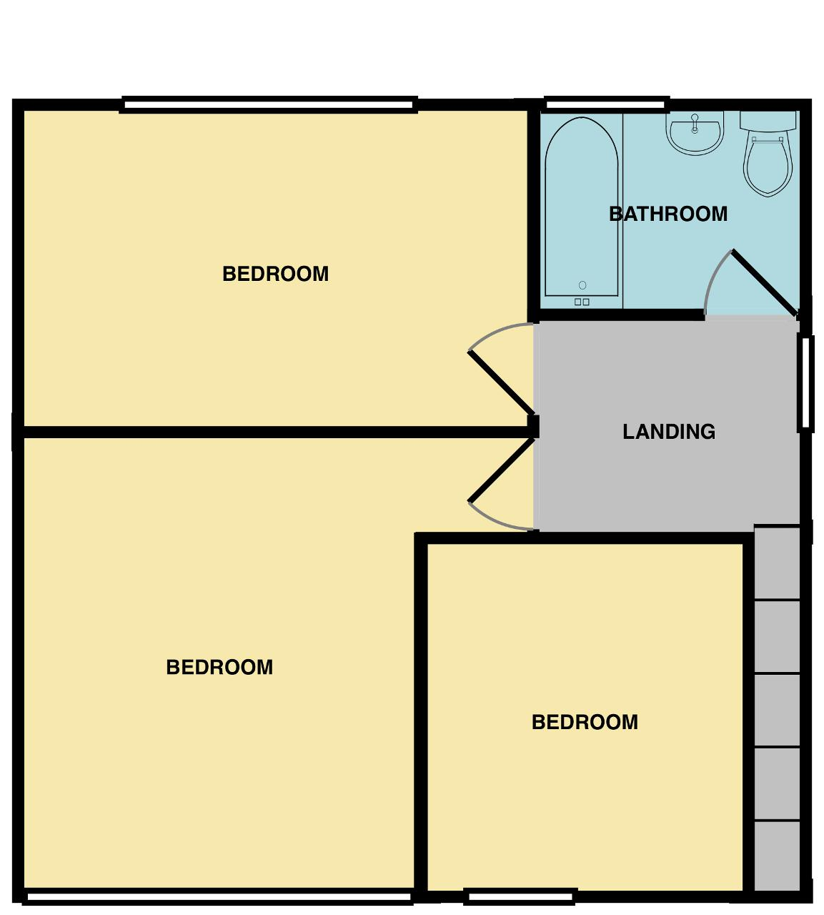 Heading up the carpeted staircase onto the first-floor landing, there is a double-glazed window to the side along with four wooden doors. Three of these doors open into all three bedrooms leaving the final door to open into the first-floor bathroom.
