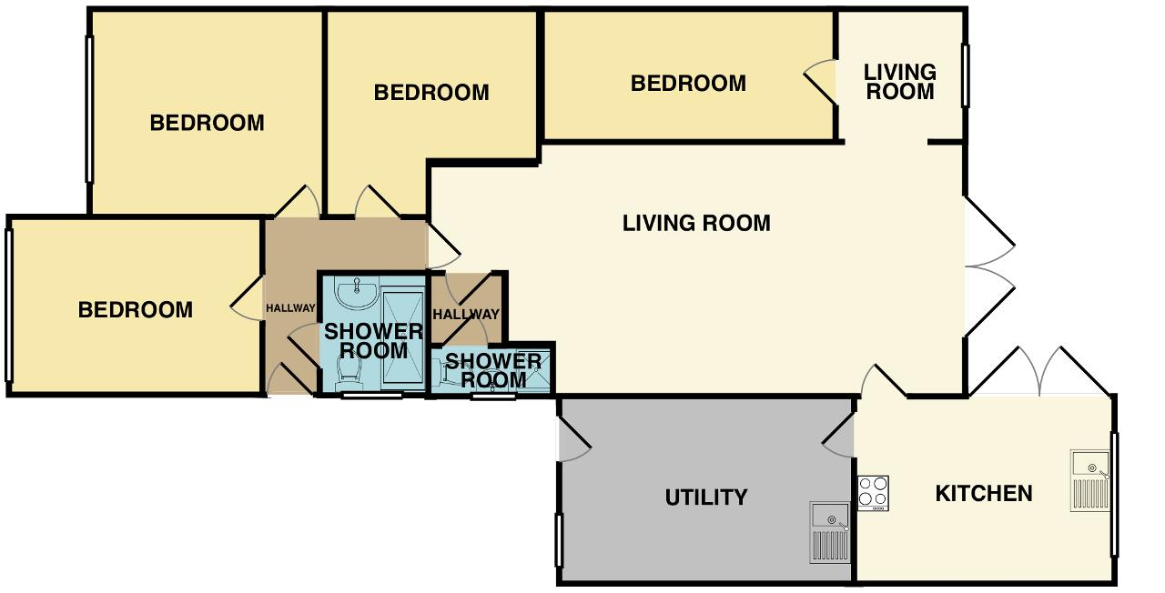 The bungalow has been thoughtfully extended to maximise both comfort and functionality. The accommodation comprises four spacious bedrooms, each offering ample natural light and scope for personalisation. The two shower rooms are stylishly appointed, ideal for busy mornings or guest convenience.