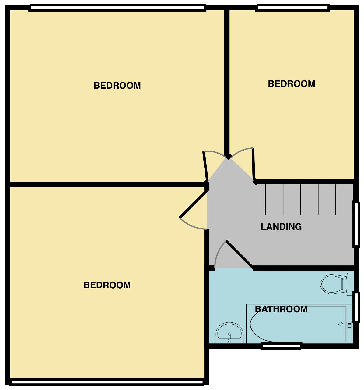Upstairs, the first floor hosts three well proportioned bedrooms, each offering comfortable accommodation for family members or guests. The layout is served by a conveniently positioned first floor bathroom, ensuring practicality for busy households. The arrangement of the bedrooms and bathroom makes the upper level functional and efficient, with scope for personalisation or reconfiguration if desired.