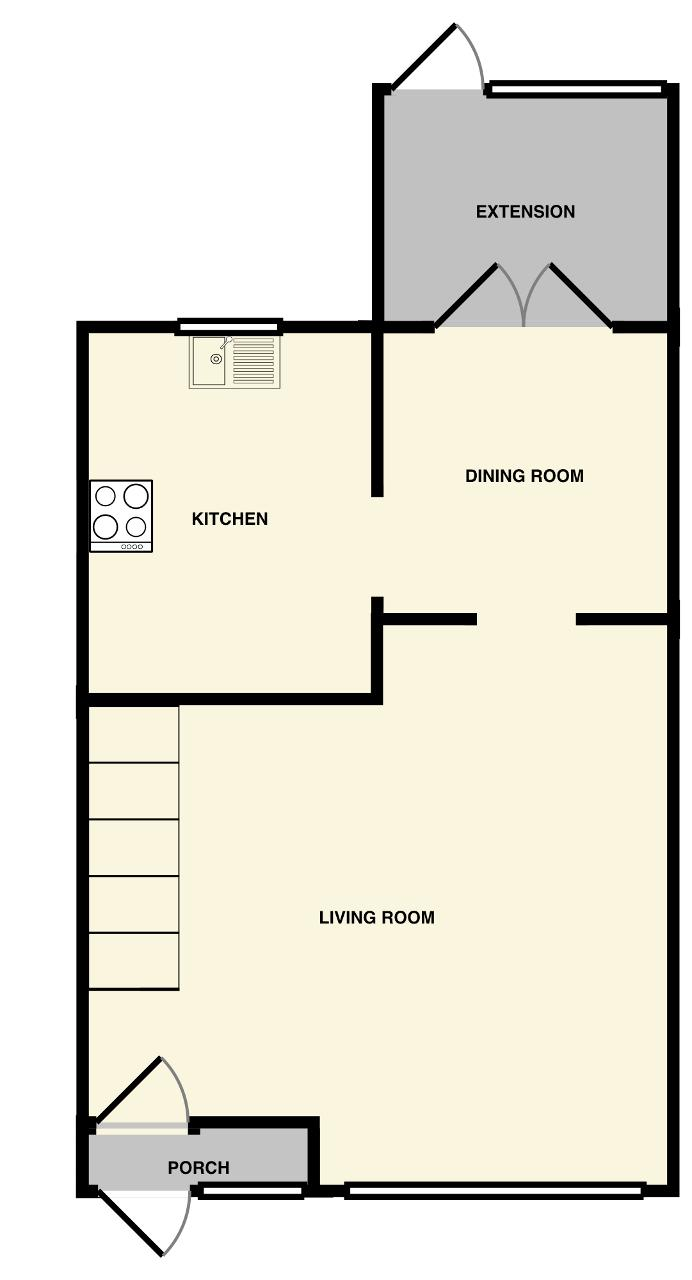 The ground floor extension provides additional living space, offering flexibility for a larger lounge, dining area, or future reconfiguration.