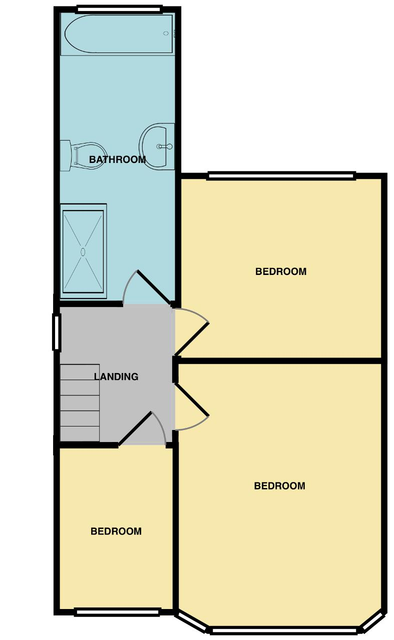 The first floor bathroom is beautiful and a fantastic size and features an obscured glass window to rear along with painted walls and vinyl flooring. The bathroom also has double shower cubicle to side along with rounded bath to rear and sink with under vanity unit.